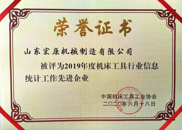 近期,中国机床工具工业协会表彰了信息统计工作先进企业和先进个人,山东宏康机械制造有限公司等企业荣获“2019年度机床工具行业信息统计工作先进企业”称号,公司程莉荣获“2019年度机床工具行业信息统计工作先进个人”称号。